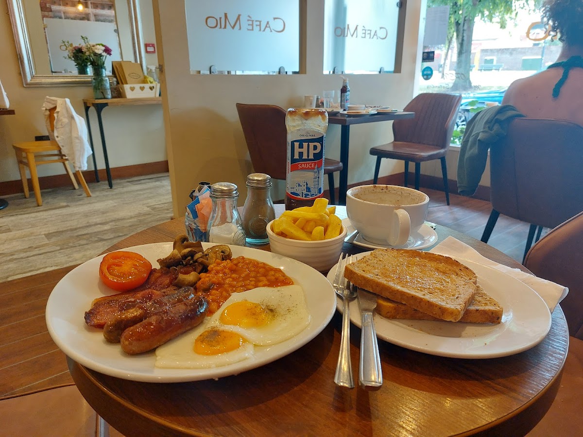 Just to say I had a lovely lunch in Cafe Mio .I liked it so much, I went back the next day. Had a breakfast both days, and the first time it was huge with scrambled egg, beans and mushrooms, and toast, the second day I opted for a smaller "taster" .both meals were lovely. Really well cooked. And the staff were mega friendly..Will def be back